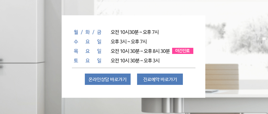 온라인 전화상담과 예약을 통해 상담 후 내원하시면 더욱 편안한 진료를 받으실 수 있습니다.