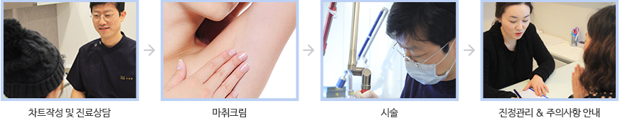 Long pulse 755nm 파장의 레이저를 이용하여 젤을 바를 필요가 없고 기존의 다이오드 레이저 보다 통증이 적어서 마취가 필요 없이 편안하게 시술을 받을 수 있습니다.