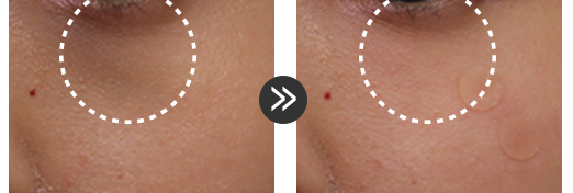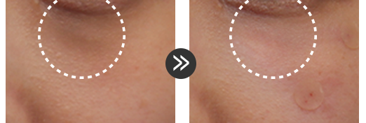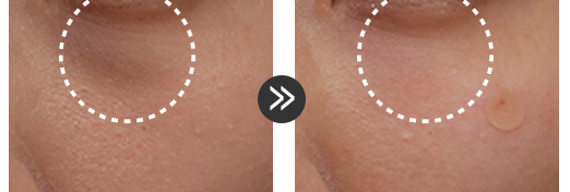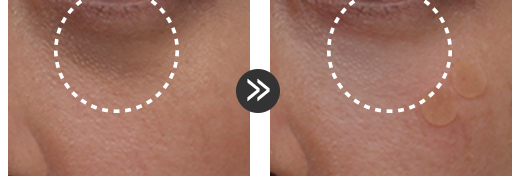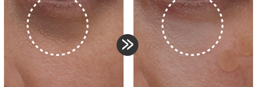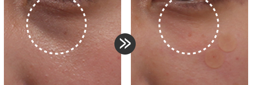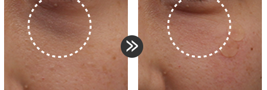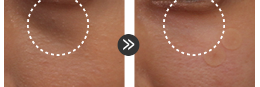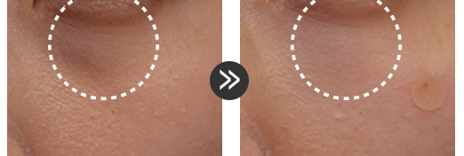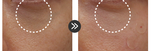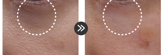 세밀한 입자로 이루어져 피부가 얇은 눈밑에 시술했을 시에도
