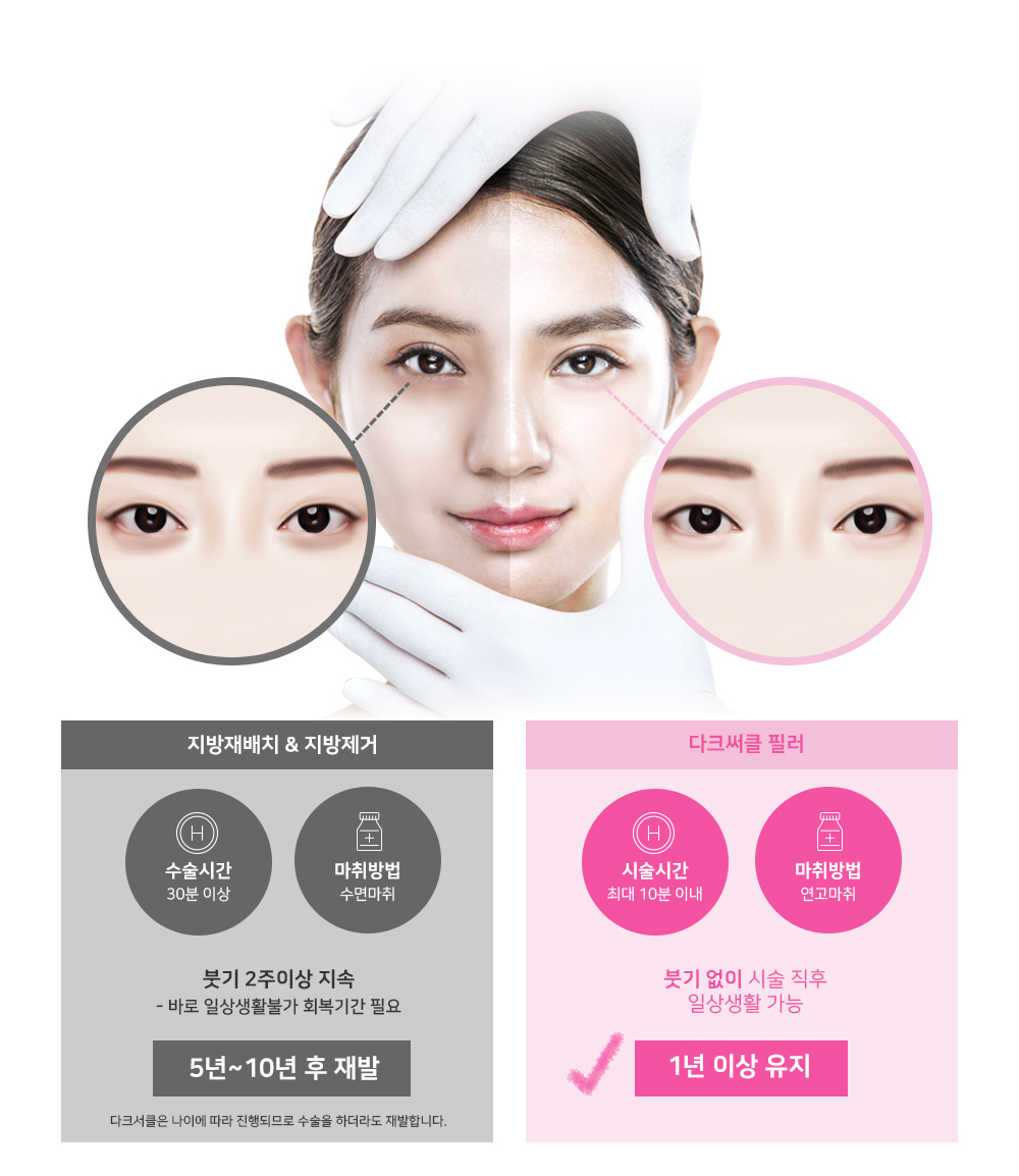 이 경우 피부 얕은 곳에 볼륨을 채우는 다크써클 필러가 상당히 효과적입니다.