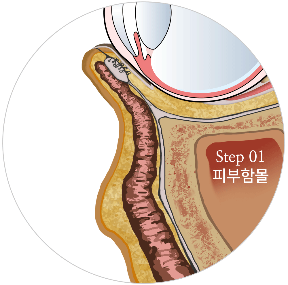 눈밑 부위 지방의 불균등한 위축으로 주름이 발생하는 것과 눈밑 부위의 전반적인 볼륨 감소 등으로 요약할 수 있습니다.
