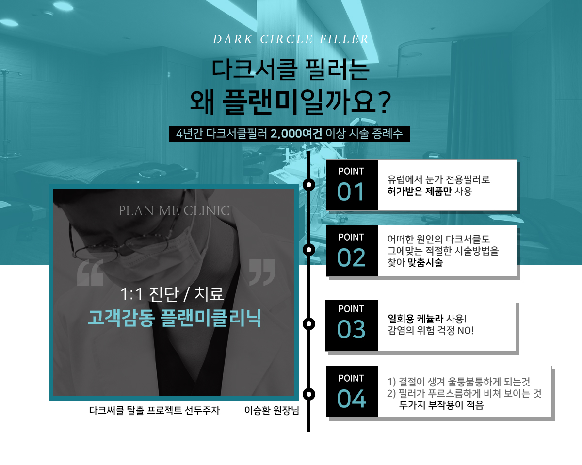 다크써클 필러의 시술과정. 플랜미는 안전하고 효과적인 시술로 최상의 만족을 드립니다.