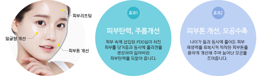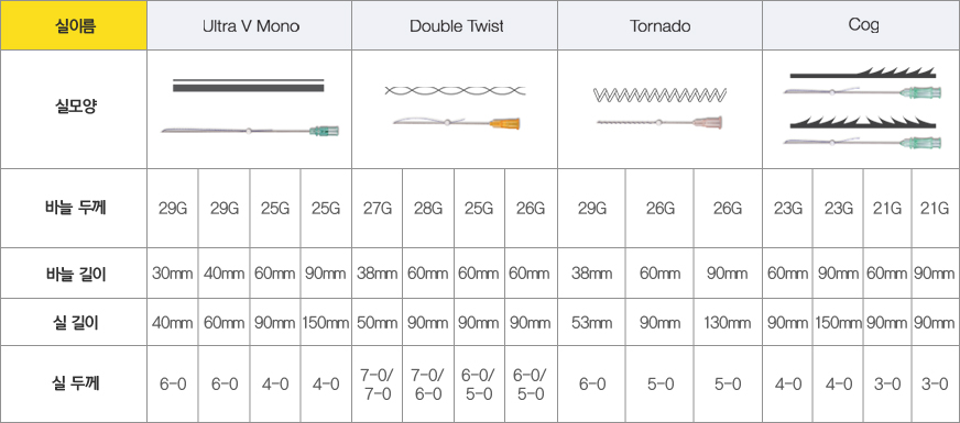 시술방법 | KFDA 인증 녹는실 사용 | 실이 녹지 않고 남아있음 제거 시 피부 박리제거 |