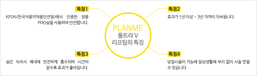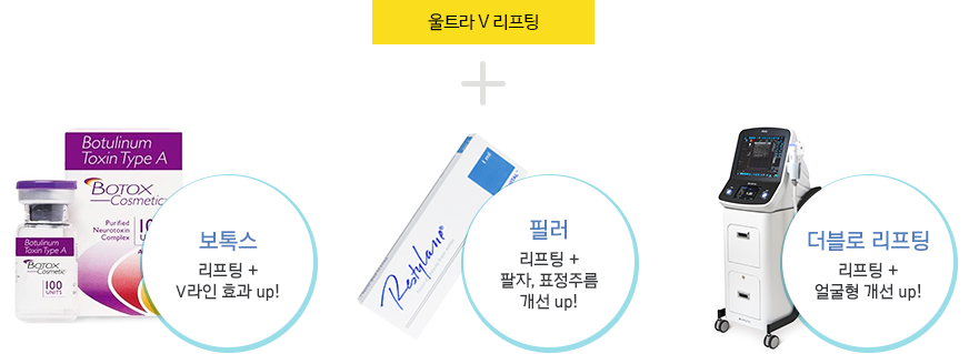 울트라 V리프팅만으로도 좋은 효과를 보실 수 있지만, 다른 프로그램과 함께 시술하게 되면 더욱 뛰어난 시너지 효과를 기대할 수 있습니다. 플랜미클리닉에서는 환자의 피부상태와 생리적 특성에 따라 적합한 시술을 선택하기 때문에 자연스러움은 물론 안전한 리프팅 시술이 가능합니다.