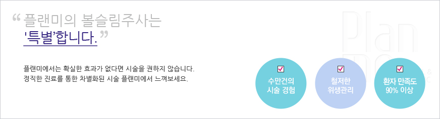 필러시술에 있어 안전함, 시술 만족, 정품정량은 고객님들께 드려야 할 당연한 권리입니다. 플랜미클리닉은 고객님들의 권리를 존중합니다.