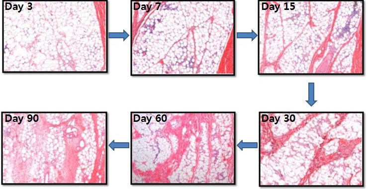 파괴된 지방세포들은 인체 메커니즘을 통해 7일~90일에 걸처 배출되고 지방층이 줄어들어 시술부위의 사이즈 감소됩니다.