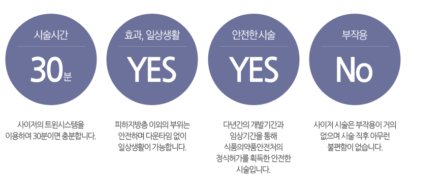 BMI 지수 30kg/m2 이하이고, 복부지방 두께가 2.5cm 이상인 사람의 경우 복부둘레 평균 2cm 내외의 감소에 도움을 주는 고강도 집속 초음파 수술기입니다.