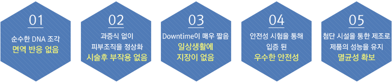 1 | 리쥬란은 Extracellular Matrix의 재생 및 조직복원을 통하여 근본적으로 피부를 건강하고 탄력있게 만들어 줍니다. |