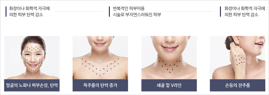 리쥬란 힐러는 세포의 재생 과정을 통해 자연적으로 피부구조를 복원하므로 2~3주 간격으로 4회 시술을 통하여 최적의 효과를 기대할 수 있습니다.
