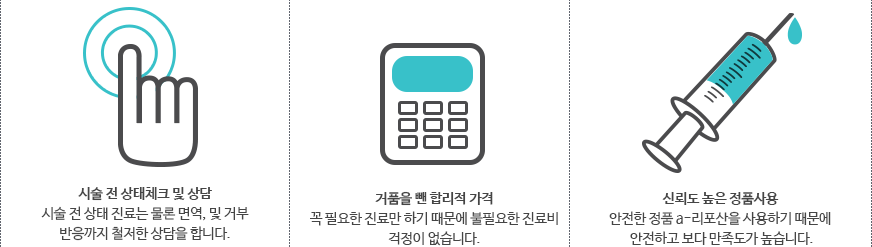 시술시간 | 마취방법 | 회복기간 | 통증 및 내원 |