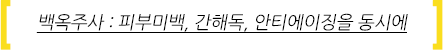 백옥주사는 대한비타민연구회에서 개발된 비타민 치료 방법 중 하나입니다. 글루타치온 성분이 피부를 하얗게 만들고 피부에 탄력을 줄 뿐만 아니라 윤기가 흐르도록 도와줍니다. 뿐만 아니라 체내에 남아있는 중금속(수은/남)을 빼주고, 간해독(Phase 2 Detox)을 하며 강력한 항산화작용을 통한 노화방지와 T세포를 증가시켜 면역력을 올려줍니다.