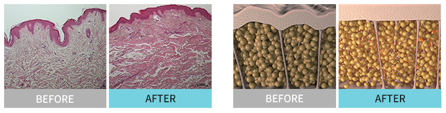 늘어져 있던 세포를 수축시키고 리모델링을 통해 시술 효과가 극대화되는, 눈으로 직접 확인하는 세포의 변화! |